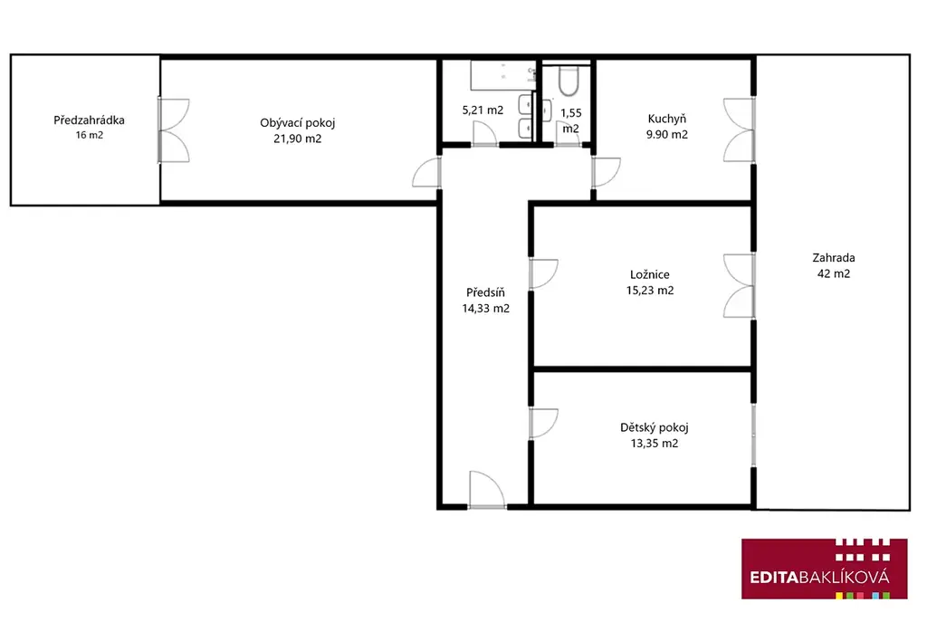 Výměry jednotlivých místností jsou uvedeny v přiloženém půdorysu.