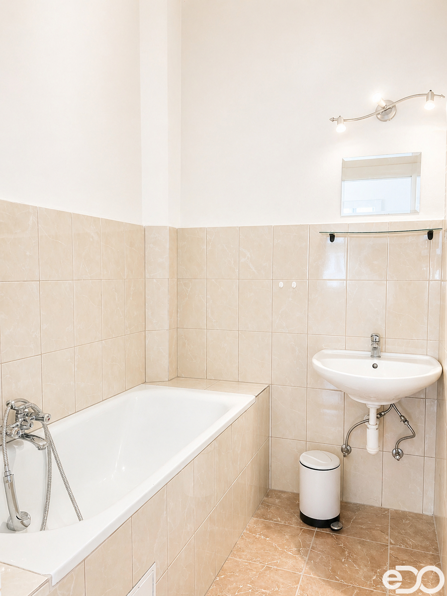 Součástí bytu je balkon, koupelna s vanou a samostatné WC. Kuchyň je vybavena sporákem, troubou a digestoří, k dispozici je také nová pračka. Byt je připraven k okamžitému nastěhování.