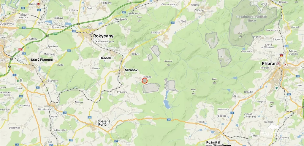 Představuji vám k prodeji stavební pozemek 1630 m2 v obci Skořice, okres Rokycany.