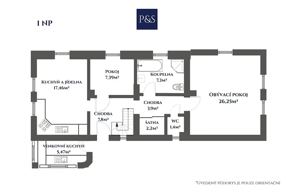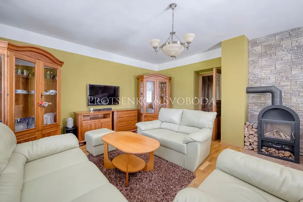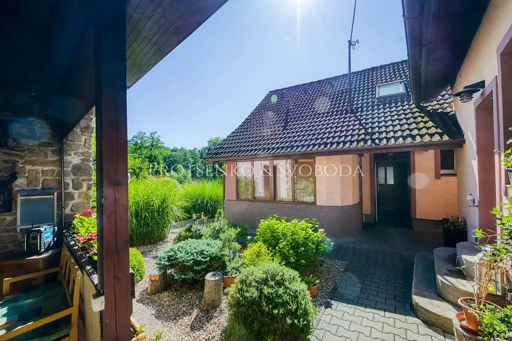 Uvnitř vás přivítá obývací pokoj s krbovými kamny, které vytvářejí hřejivou atmosféru skutečného domova. Dvě prostorné garáže umožňují rozšíření o další obytné místnosti – třeba pro hosty nebo ateliér. Na pečlivě upraveném pozemku potěší plně funkční udírna, venkovní bazén i samostatný zahradní domek proměněný ve wellness zónu se saunou – ideální prostor pro odpočinek.