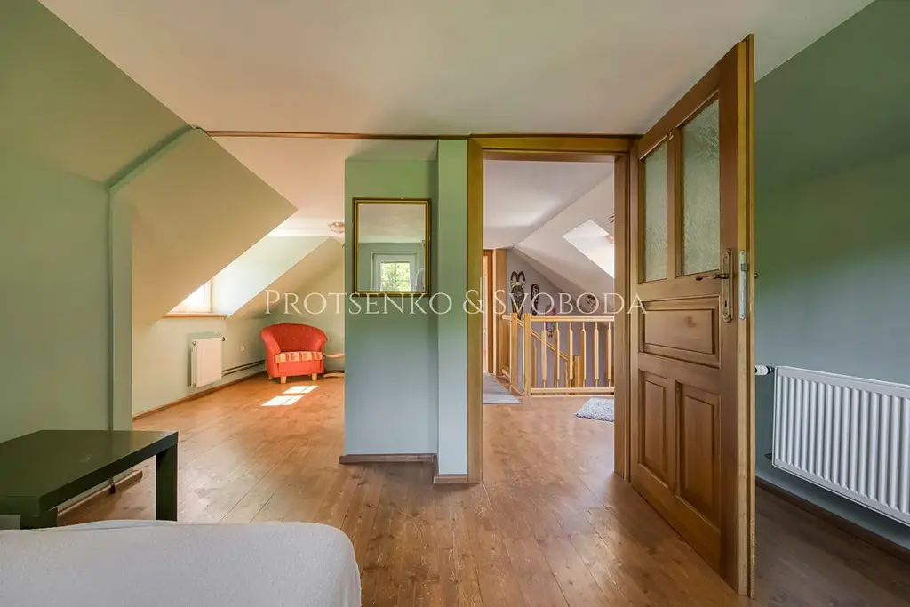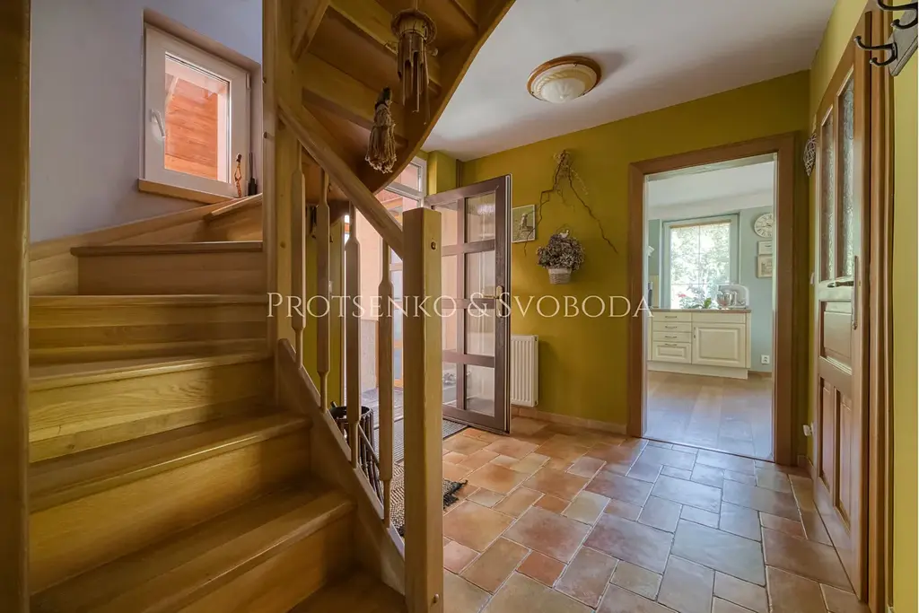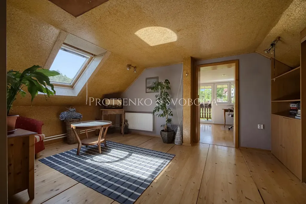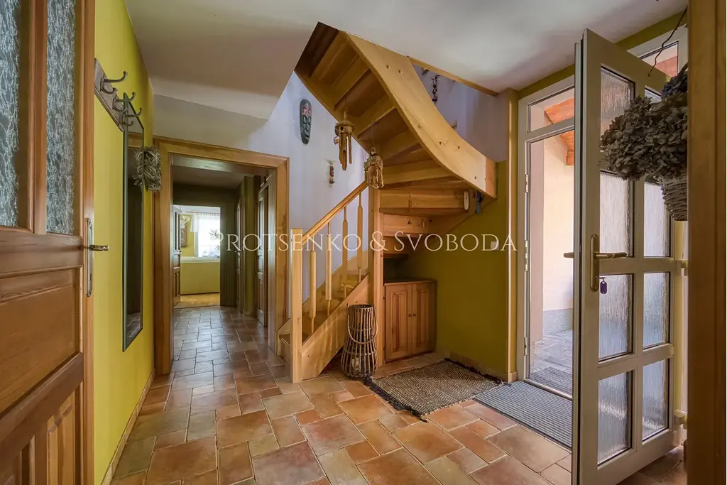 Chalupa prošla důkladnou a citlivou rekonstrukcí, která zachovala její charakter a zároveň přinesla pohodlí pro dnešní potřeby. Zateplená fasáda i střecha chrání dům před rozmary počasí, zatímco dubové podlahy nejvyšší kvality vnášejí do interiéru přírodní teplo a eleganci. Truhlářem na míru zhotovené dveře a rustikální kuchyně podtrhují vztah k tradici a ručnímu řemeslu.