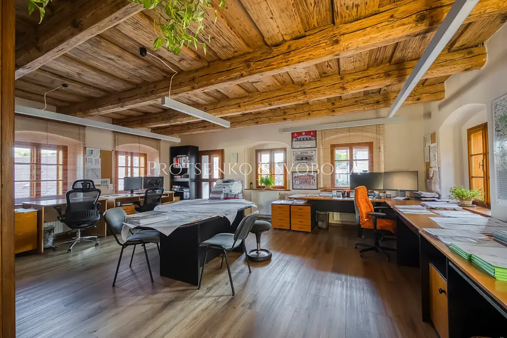 Vysoké stropy, velká okna a vzdušné prostory dnes tvoří ideální zázemí pro kanceláře, obchody i bydlení — s možností úprav podle potřeb nového majitele.