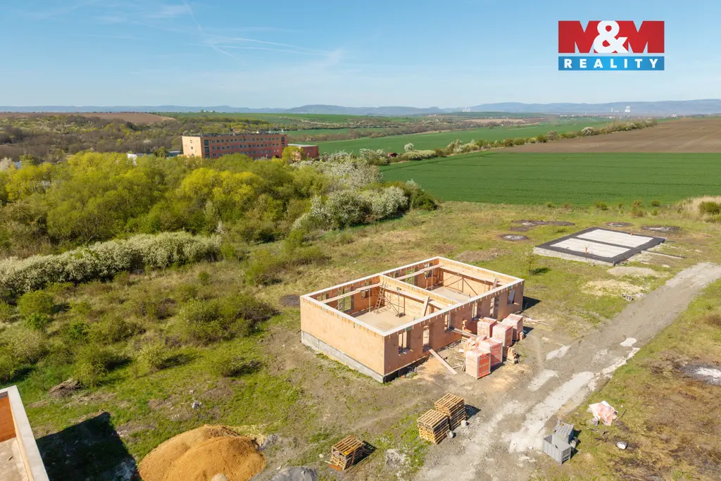 V malebné obci Hrušovany u Chomutova Vám nabízíme ke koupi pozemek o celkové výměře 831 m² s hrubou stavbou poloviny dvojdomku o jednom nadzemním podlaží s obytným podkrovím, který bude napojen na jednotlivé přípojky k hranám pozemků se stavebním povolením a schváleným projektem. V současné době je stavba ve fázi postaveného prvního nadzemního podlaží a dokončení čeká na Vaše návrhy a přání.