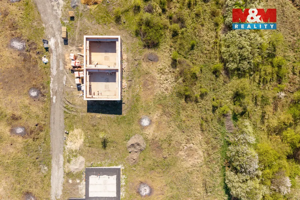 V malebné obci Hrušovany u Chomutova Vám nabízíme ke koupi pozemek o celkové výměře 836 m² s hrubou stavbou poloviny dvojdomku o jednom nadzemním podlaží s obytným podkrovím, který bude napojen na jednotlivé přípojky k hranám pozemků se stavebním povolením a schváleným projektem. V současné době je stavba ve fázi postaveného prvního nadzemního podlaží a dokončení čeká na Vaše návrhy a přání.