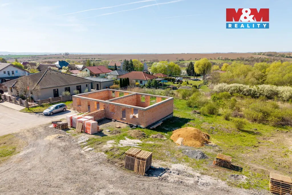 V malebné obci Hrušovany u Chomutova Vám nabízíme ke koupi pozemek o celkové výměře 827 m² s hrubou stavbou poloviny dvojdomku o jednom nadzemním podlaží s obytným podkrovím, který bude napojen na jednotlivé přípojky k hranám pozemků se stavebním povolením a schváleným projektem. V současné době je stavba ve fázi postaveného prvního nadzemního podlaží a dokončení čeká na Vaše návrhy a přání.