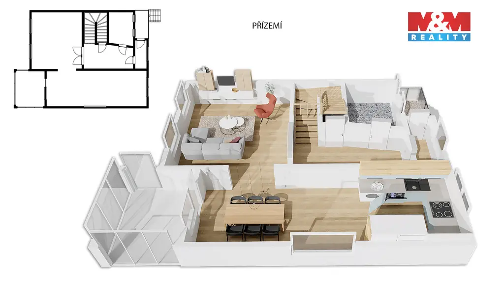 Dům prošel rozsáhlou rekonstrukcí přibližně před dvaceti lety až na nosné zdi včetně rozvodů. Moderní koupelny s toaletou byly dokončeny zhruba před dvěma lety. Dispozice zahrnuje čtyři pokoje, kuchyň s jídelnou, krbová kamna a zimní zahradu, kterou lze v teplých měsících zcela otevřít.