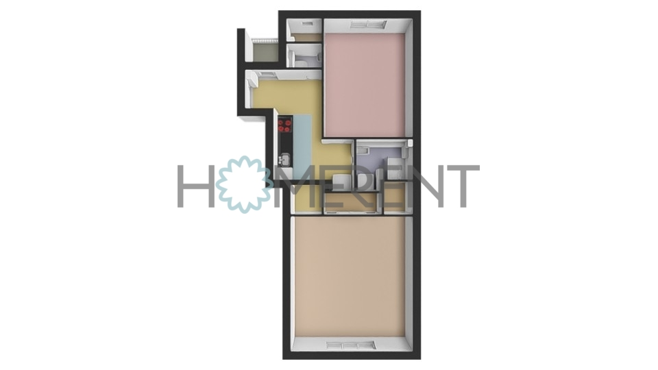 Byt je nezařízený a nabízí praktické dispoziční řešení se dvěma obytnými místnostmi, což z něj činí ideální volbu pro mladý pár i spolubydlení. V jedné z místností se nachází velká vestavěná skříň, která poskytuje dostatek úložného prostoru.