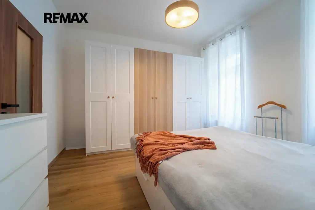 Byt prošel velmi zdařilou kompletní rekonstrukcí. Vytápění zajišťuje elektrický kotel, ohřev vody pak bojler. Podlahy jsou vinylové, nová okna chrání předokenní žaluzie. V samostatné kuchyni je instalována kuchyňská linka s vestavnými spotřebiči. V ložnici pak zůstává velká prostorná šatní skříň. K bytu dále náleží komora na chodbě a sklepní kóje o výměře 3m2. Všichni vlastníci mají možnost užívat velký dřevěný přístavek ve vnitrobloku k ukládání kol či kočárků.