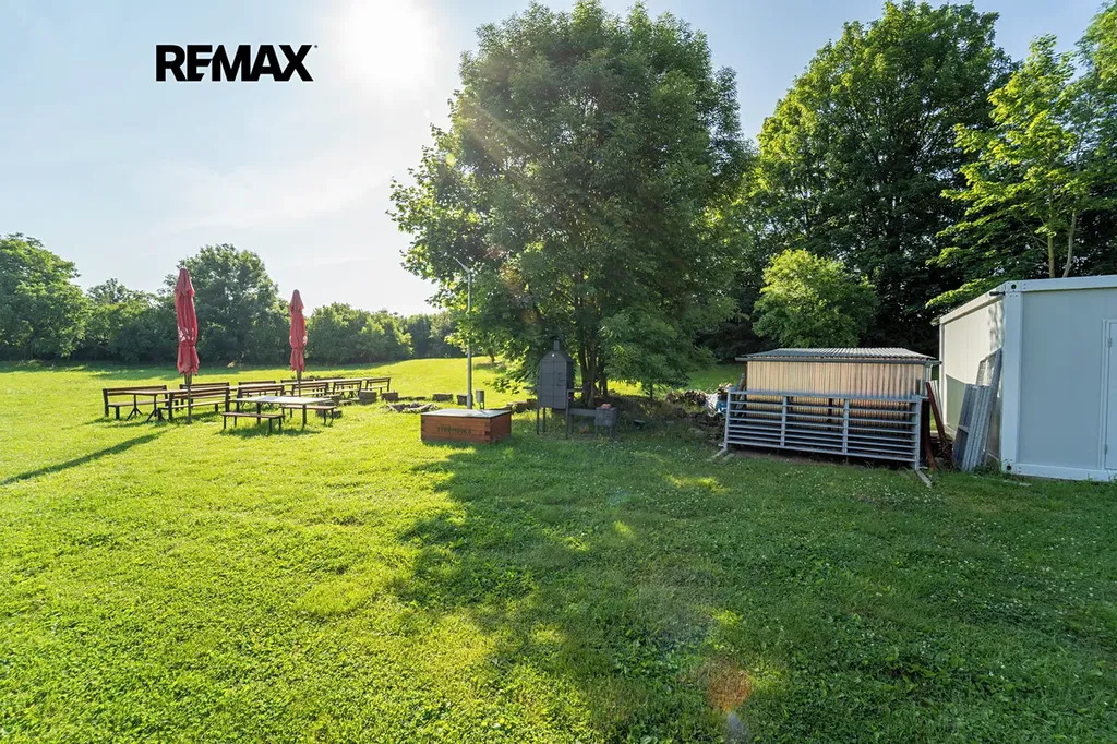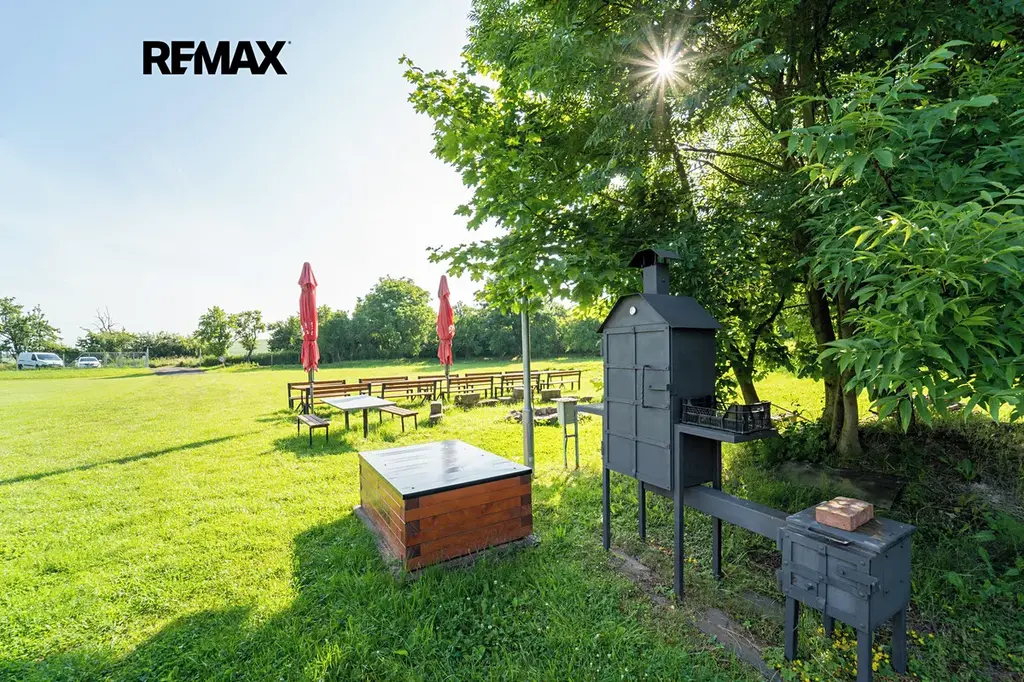 Pozemek o velikosti 10 584 m2 poskytuje novému vlastníkovy další a další využití, jelikož je zde dostatek místa pro vlastní realizaci a možností a různých akcí.