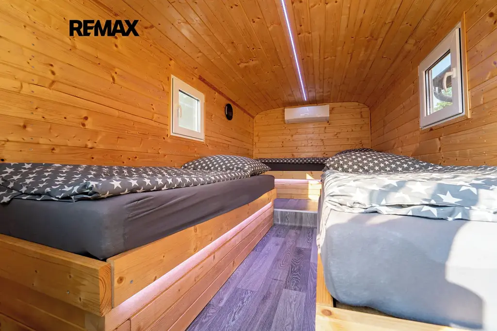 Spaní na akci zajišťují 4 x RETRO vojenské maringotky, každá má 3 x spaní a tak je 12 x lůžek s klimatizací, zásuvkou na nabíjení telefonu, plastovým oknem a led barevným podsvícením – pohodlí, které na první pohled není vidět.