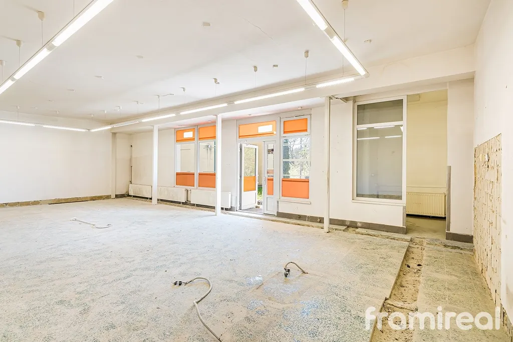 Objekt nabízí velkorysý otevřený prostor bývalé prodejny, doplněný o zázemí – sklady, kanceláře, sociální zařízení, technickou místnost a nakládací rampu.