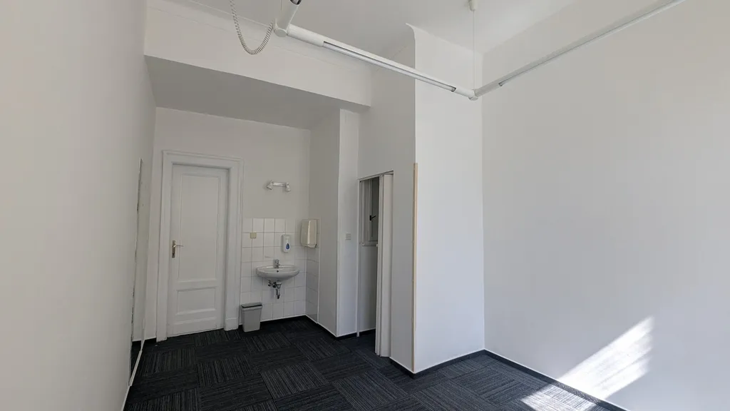 Nebytové prostory o celkové ploše 15 m² se nachází ve 3. nadzemním podlaží. Jsou vhodné jako kanceláře, ordinace pro fyzioterapii nebo masáže. V místnosti se nachází umyvadlo a u vstupu je menší místnost s předsíňkou, která může sloužit jako šatna pro Vaše klienty.