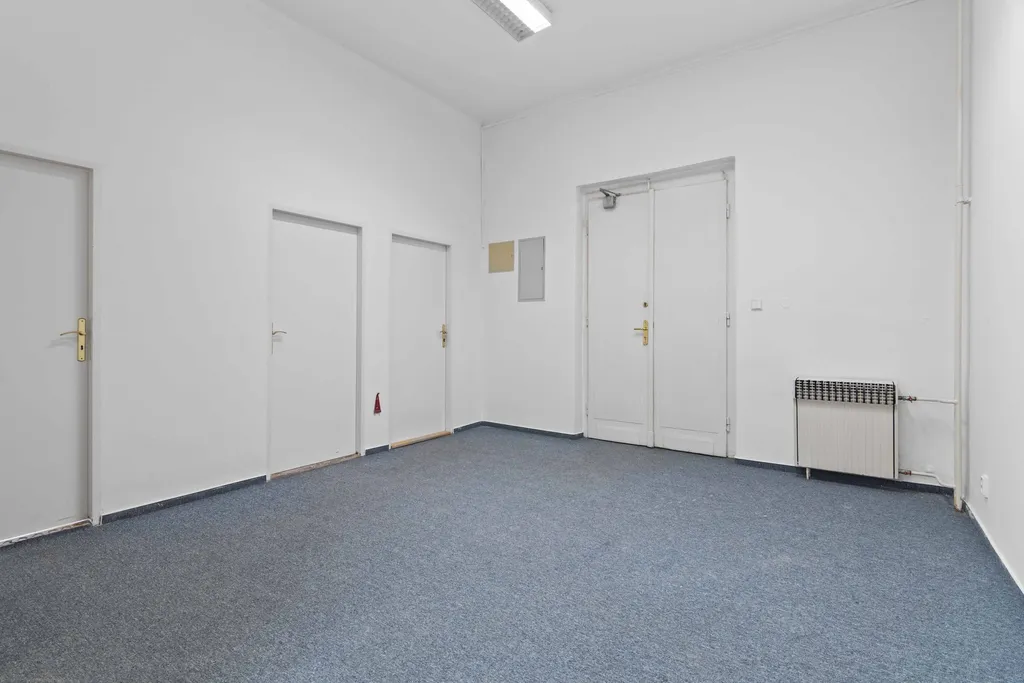 Kancelářské prostory o celkové ploše 30 m² se nachází ve 4. nadzemním podlaží. K dispozici je společná kuchyňka a toalety na patře.