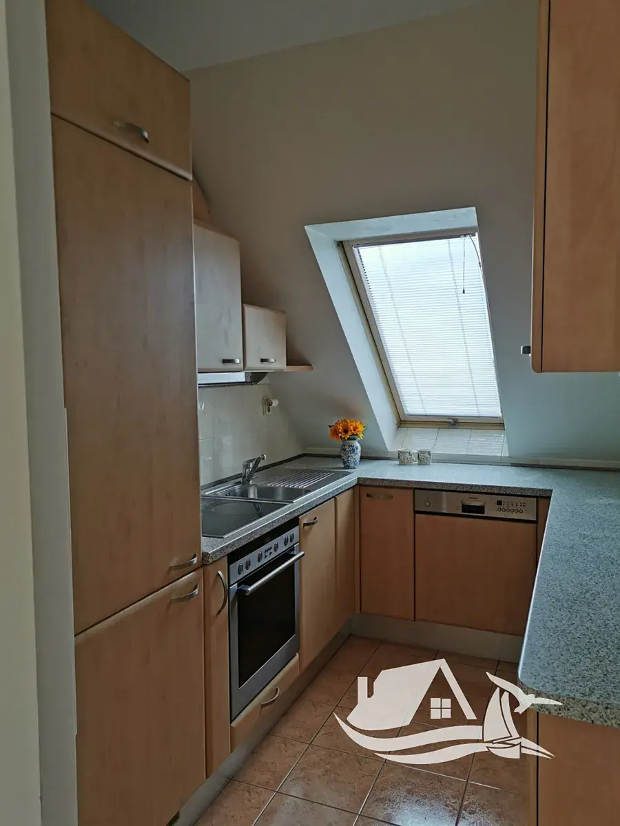 Byt disponuje podlahovou plochou 62,1 m² a je situován v podkrovním podlaží, což zajišťuje příjemnou atmosféru, dostatek světla i větší soukromí. Velkou předností je prostorná terasa orientovaná na tři světové strany, která nabízí ideální místo pro relaxaci, posezení s přáteli nebo klidné ranní kávy po celý rok.
