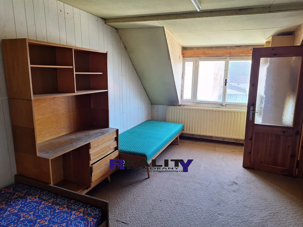 Dispozice domu: přízemí vstupní chodba, kuchyně + 3 obytné místnosti, koupelna s vanou a samostatná toaleta. V patře domu jsou k využití další 2 mítnosti + půdní prostor na odkládání věcí. K dispozici je tedy aktuálně 5 obytných místností. Vytápění zajišťují kamna na tuhá paliva, ohřev vody el. bojler.