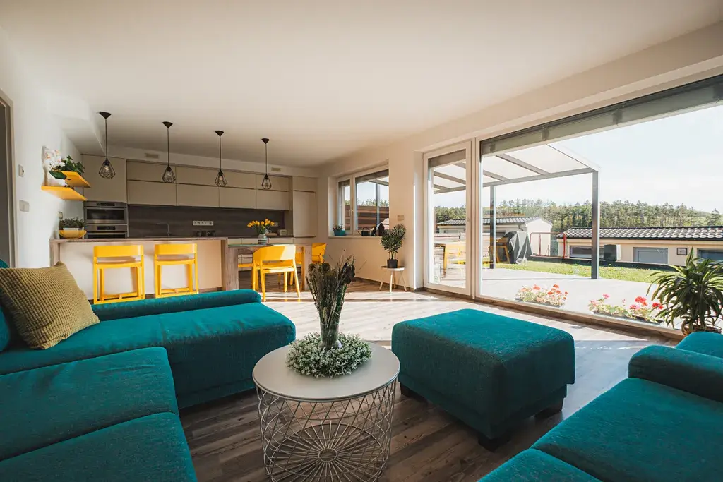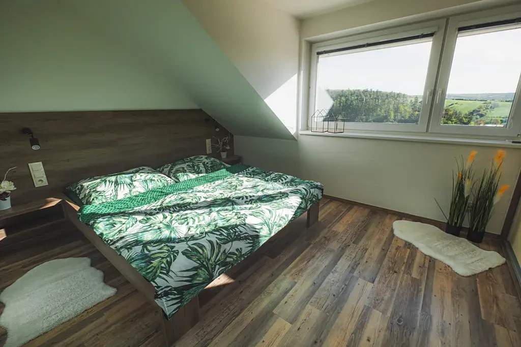 Prodej moderního domu o velikosti 5+kk, který se nachází v klidné části Uherského Brodu - Újezdec u Luhačovic. Jedná se o pohodové bydlení pro rodinu, která se může rovnou nastěhovat bez nutnosti dalších investic. Dispozičně se jedná o vstupní chodbu s vestavěnou skříní, pracovnu a prostorný obývací pokoj propojený s kuchyní se vstupem na terasu. Zde je nádherný nerušivý výhled přes prosklený portál na okolní krajinu. Dále koupelna se sprchovým koutem, toaletou a technickým zázemím. Na chodbě je vestavěná skříň s pračkou, sušičkou a úložnými prostory. V 2.NP se nabízí dva dětské pokoje, ložnice, koupelna s vanou, sprchovým koutem a samostatné WC. V každém pokoji jsou vestavěné skříně a tím se nabízí dostatek úložného prostoru. Dům je napojen na obecní kanalizaci, vodovod, elektřinu 220 V, ohřev vody je řešen solárnímy panely, podlahové teplovodní vytápění tepelným čerpadlem a neustálý přísun čerstvého vzduchu bez nutnosti větrání zajišťuje rekuperace. Dům je krásně prosvětlený a stínění je regulováno elektrickými venkovními žaluziemi. Na dům navazuje terasa z tropického tvrdého dřeva Massaranduba a hliníková pergola s osvětlením. Na pozemku se nachází zahradní domek a retenční nádrž. Před domem jsou tři parkovací místa a průjez brankou do zahrady. Před domem je dětské hřiště a vynikající sousedi. Jedná se o bydlení s nízkými měsíčními náklady s dobrou dostupností do přírody a zároveň v dobré dojezdnosti do Uherského Brodu.