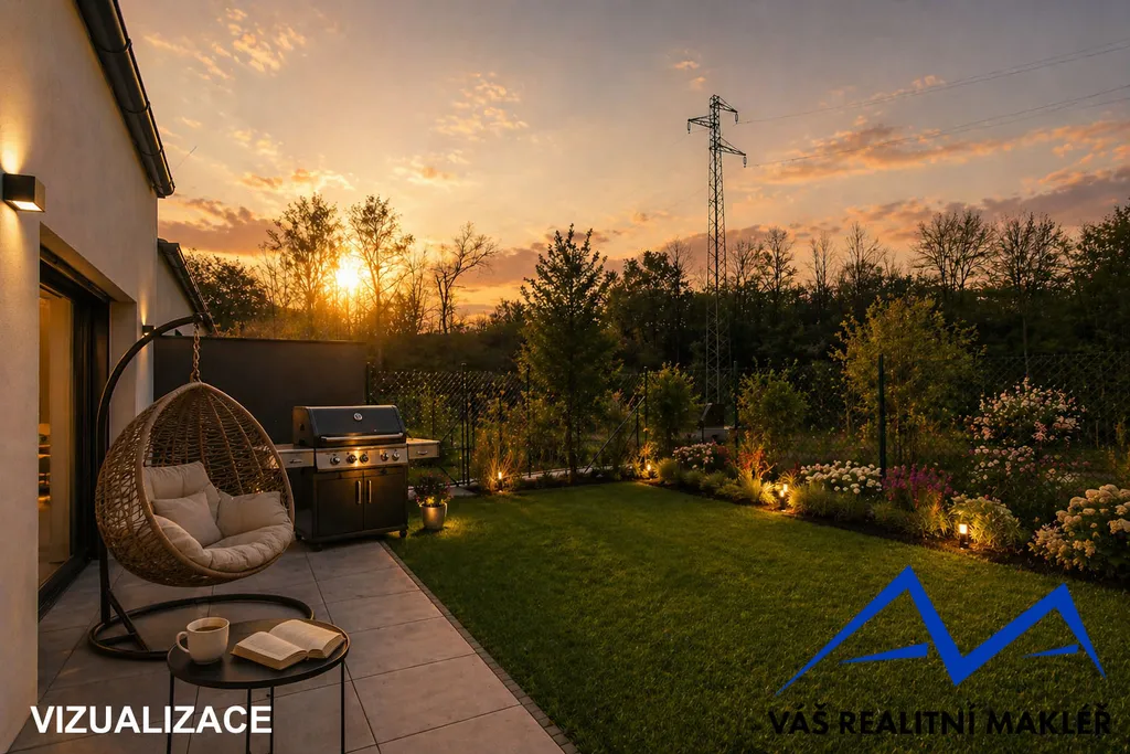 Areál je uzavřený a nabízí klidné a bezpečné bydlení. Oplocení zahrad bude doplněno o fólii pro větší soukromí a součástí je i nově založený trávník.