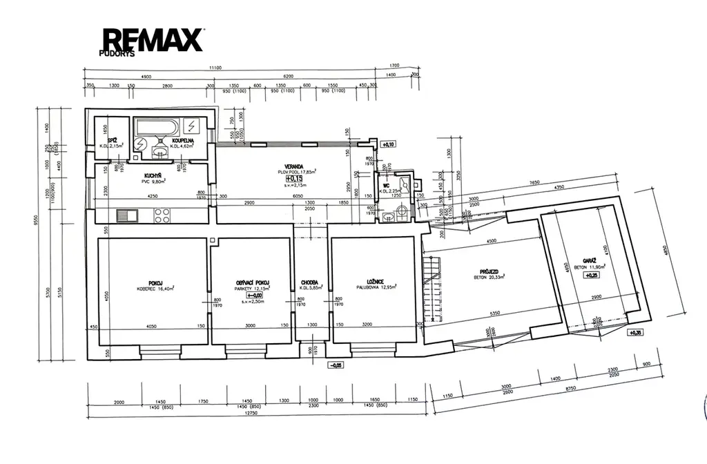 Napojení domu na IS: elektřina (230 i 380V), plyn, voda, odpady jsou svedeny do obecní kanalizace.
