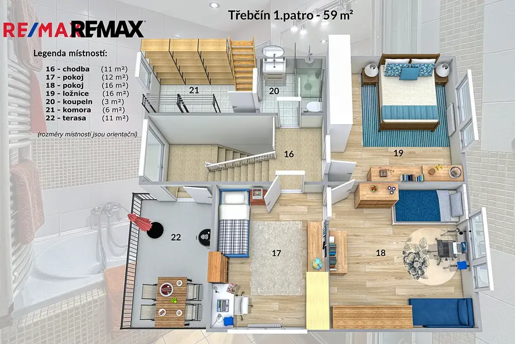 V exkluzivním zastoupení majitele nabízíme k prodeji dům se zahradou v Třebčíně nedaleko Olomouce. Vícepodlažní dům s půdou je částečně podsklepený s garáží, dílnou a skladovými prostory. Vytápění je ústřední s plynovým kotlem umístěným v suterénu a dále je provedena příprava pro krbová kamna. Dům je napojen na veřejnou kanalizaci, vodovod, plyn a elektřinu. V domě jsou plastová okna, laminátové podlahy a sádrokartonové podhledy. V 1. NP se nachází obývací pokoj s jídelnou, kuchyně, koupelna (vana, sprcha, umyvadlo, WC), vstupní hala, WC, prádelna. V přístavbě 1. NP se nachází pracovna, předsíň, šatna, koupelna (není dokončena, příprava pro sprchu, umyvadlo a WC). V této přístavbě lze řešit samostatnou obytnou jednotku nebo prostor pro podnikání. Ve 2.NP se nachází 3x ložnice, koupelna (sprcha, umyvadlo), skladový prostor s možným užitím jako šatna. Půda je svojí rozlohou a charakteristikou určená k případné půdní vestavbě.