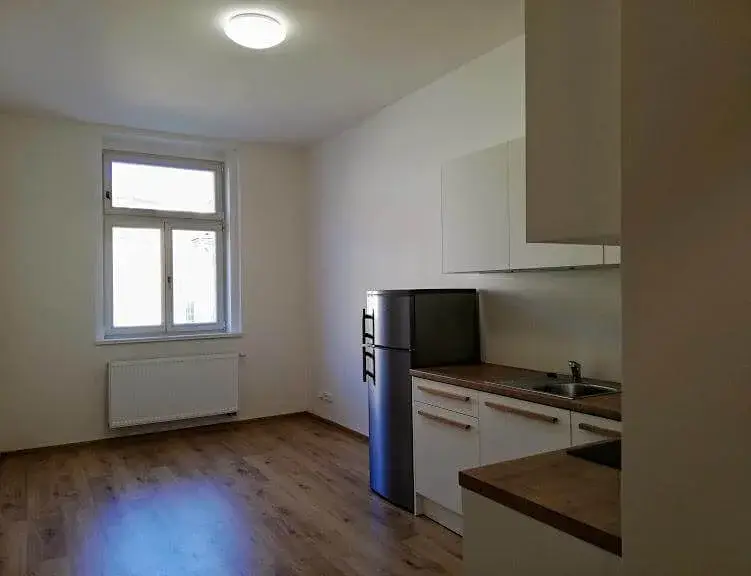 Okna bytu jsou orientována do klidného vnitrobloku. Byt se pronajímá částečně zařízený a vybaven kuchyňskou linkou se spotřebiči (horkovzdušná el. trouba, varná deska, myčka, odsavač par, kombinovaná lednice s mrazákem). V bytě není nábytek a pračka (v koupelně je připravena přípojka) z důvodu, aby si mohl nový nájemník, vybavit byt , dle svého vkusu. Koupelna disponuje vanou, umyvadlem a otopným žebříkem. Toaleta je samostatně. K bytu nenáleží sklep. Součástí bytu je však úložný prostor/komora. Na podlahách byla použita plovoucí podlaha, dlažba. Bonusem bydlení je také zahradu u domu, kterou nájemník může využívat k relaxaci. V okolí veškerá občanská vybavenost – Tesco expres 1 min. v docházkové vzdálenosti, restaurace, kavárny, ZŠ, mateřská škola, nedaleko nákupní centrum Eden , nemocnice Královské Vinohrady.