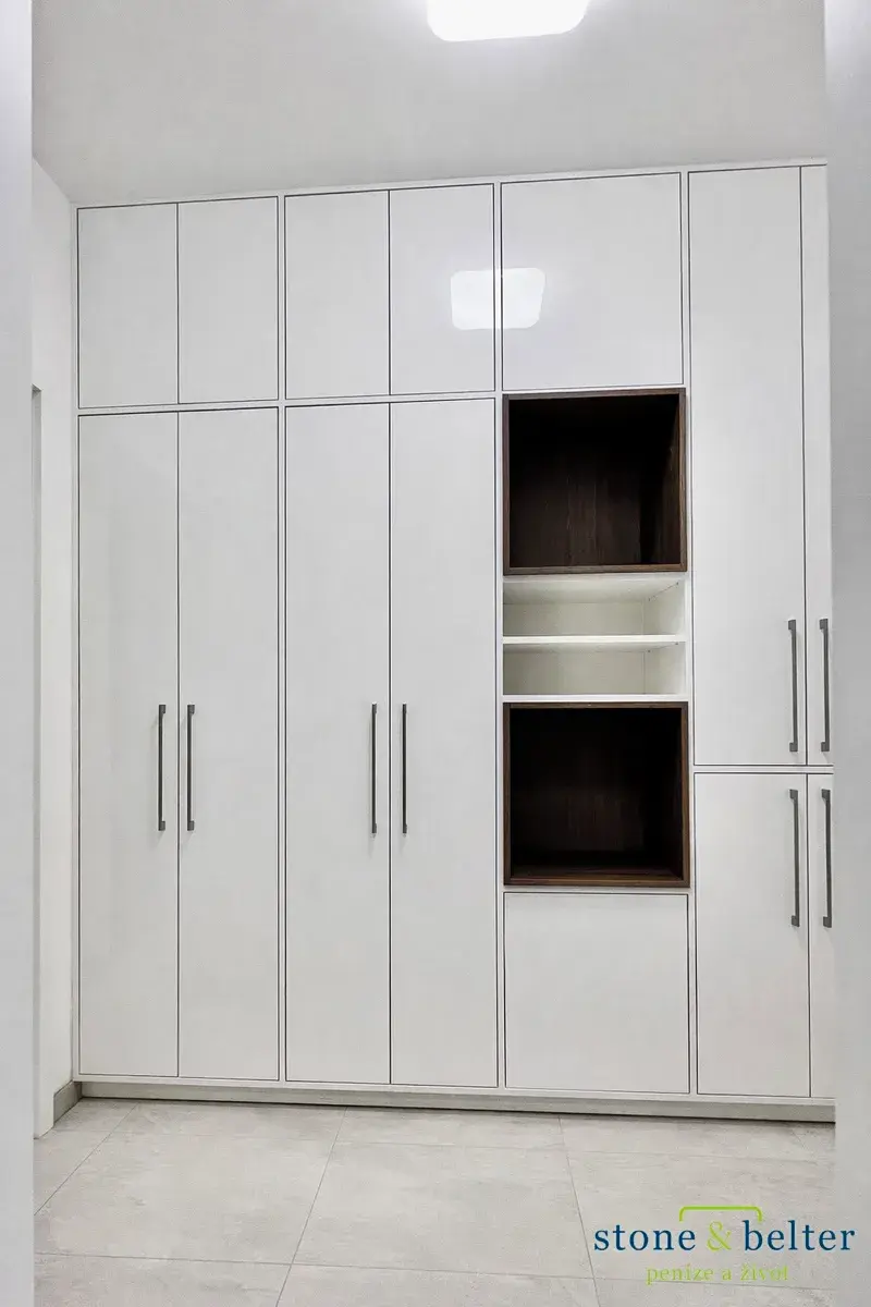 Dále je k dispozici předsíň (cca 4,0 m²) s vestavěnými skříněmi a dostatkem úložného prostoru. Koupelna (cca 4,6 m²) je vybavena vanou, toaletou, umyvadlem se zrcadlovou skříňkou a pračkou.