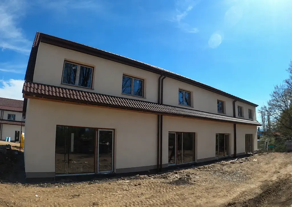 V budově se nachází pouze čtyři řadové domy dvou velikostí, nabízející klidné a moderní bydlení s dostatkem soukromí.