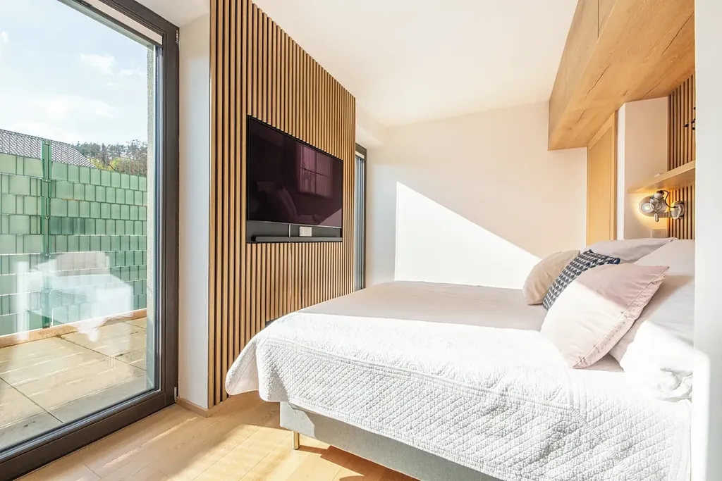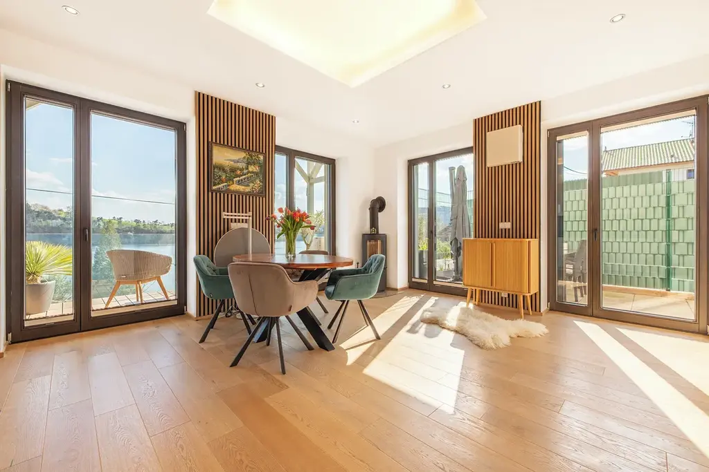 Terasa (28 m²) a balkon (10,6 m²): Ranní káva na terase, víkendy na paddleboardu a západy slunce se sklenkou vína, které vás nikdy nepřestanou bavit. Tady se nežije podle hodin, ale podle nálady hladiny.