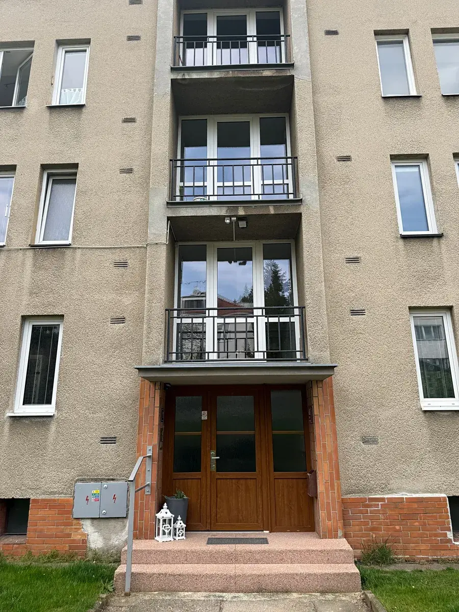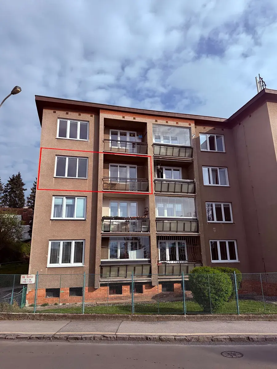 Byt se nachází ve druhém patře (třetím nadzemním podlaží) domu v pěkném stavu, který má celkem 4 nadzemní podlaží. K bytu náleží jedna lodžie (3,4 m²) orientovaná na jih.