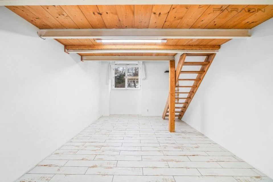 Skládá se ze 2 pokojů s dřevěným loftem, který je možný ke spaní nebo zařízení pracovny. Chodbou s kuchyňským koutem a menším pokojem. Bude zařízena nová kuchyňská linka, kterou bude možné umístit do vedlejšího pokoje po dohodě s majitelem.