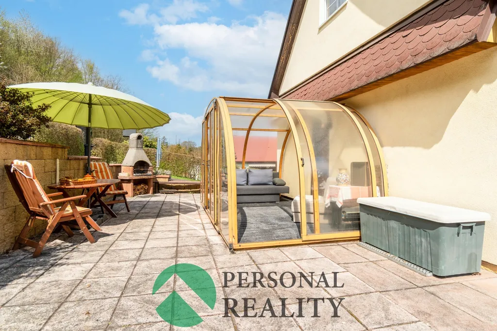 Tato pečlivě udržovaná chata ve velmi dobrém stavu nabízí plnohodnotné využití po celý rok. Velkým benefitem je otevíratelná zimní zahrada, která přirozeně rozšiřuje obytný prostor a umožňuje užívat si kontakt s okolní přírodou bez ohledu na počasí. Na ni navazuje dlážděná terasa s grilem – ideální pro letní posezení s rodinou a přáteli.
