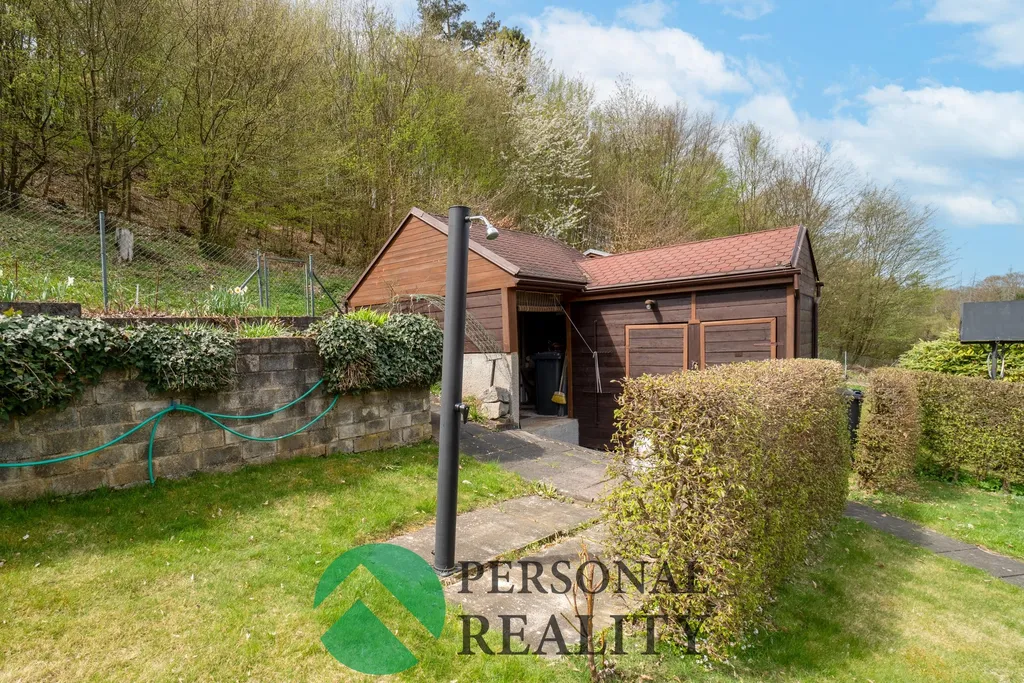 Chata stojí na krásně udržované, oplocené zahradě se spoustou okrasných rostlin a keřů. V horkých dnech oceníte připravenou instalaci pro venkovní sprchu. Na pozemku, který je v dlouhodobém stabilním nájmu od obce, se nachází také praktická vedlejší stavba sloužící jako dřevník a sklad zahradního náčiní, doplněná o další WC. Nájemní smlouva k pozemku přejde na nového majitele.