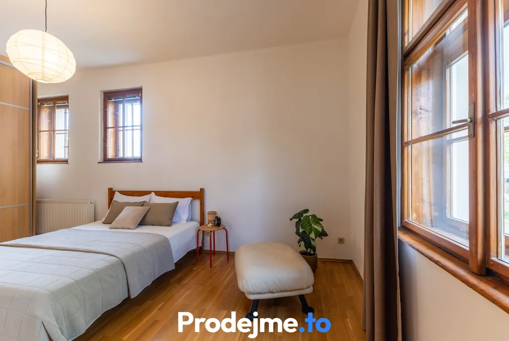 Jako nájemník získáte přístup ke sdíleným prostorám domu – na balkon v mezipatře a především na společnou zahradu ve vnitrobloku, kde je prostor pro venkovní posezení nebo sušení prádla. K uskladnění sezónních věcí slouží vlastní sklepní kóje o velikosti 2 m2. Vytápění i ohřev vody v bytě zajišťuje plynový kotel.