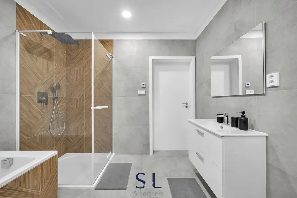 Byt je řešen jako 3+kk s promyšleným uspořádáním prostoru. K dispozici je prostorná koupelna s vanou i sprchovým koutem, samostatné WC a technická místnost.