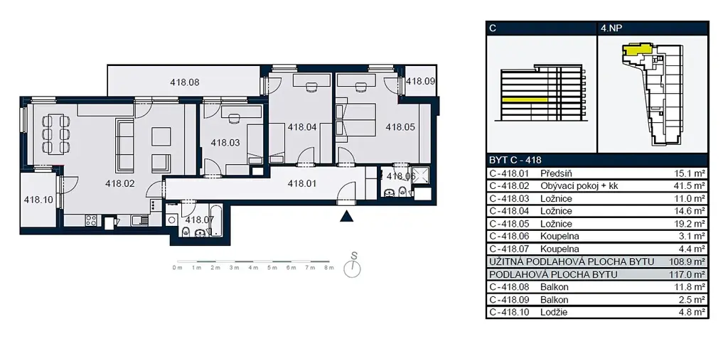 Nabízíme k pronájmu světlý, moderně zařízený byt 4+kk s balkonem a lodžií o celkové ploše 117 m², umístěný ve 4. patře novostavby z roku 2018 v žádané lokalitě Praha 3 - Strašnice.