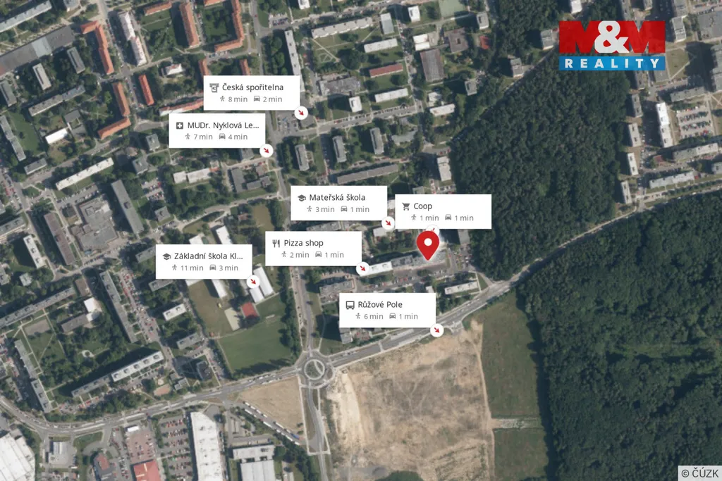 Velkou výhodou je klidná lokalita v blízkosti lesa, která nabízí příjemné bydlení s rychlým únikem do přírody a zároveň s veškerou občanskou vybaveností na dosah ruky.