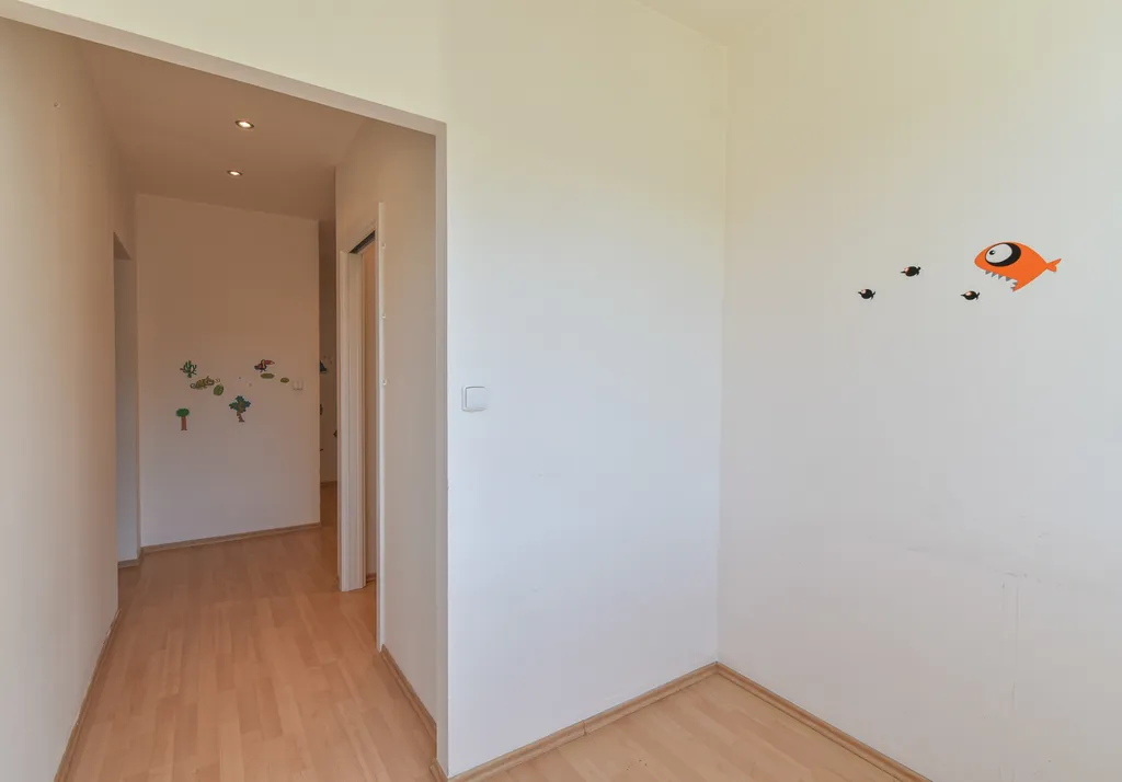 Byt se nabízí částečně vybavený. Kuchyňská linka disponuje vestavěnou lednicí, myčkou, elektrickou troubou a sklokeramickou deskou a digestoří. V obývacím pokoji se nachází plazmová televize, jinak je pokoj nezařízený. V ložnici se nachází velká vestavěná skříň a je z ní vstup na prostorný balkón. Další dva pokoje jsou nezařízené. V koupelně se nachází skřínka, umyvadlo se zrcadlem a vana. Toaleta je samostatně. V předsíni naleznete dostatek úložního prostoru, botník a vstup do komory.