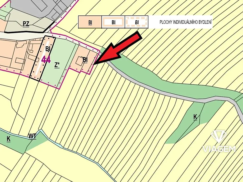 Klíčovým benefitem je ideální reálný i právní přístup k oběma parcelám. Menší z pozemků (578/3) je dle územního plánu veden jako plocha pro bydlení, což poskytuje pevný základ pro budoucí hodnotu celku. Navazující větší parcela o výměře přes 1 300 m² sice slouží jako orná půda, ale díky své poloze je naprosto ideální k využití jako rozlehlá užitková zahrada. Je to perfektní místo pro umístění maringotky, karavanu nebo vytvoření klidného zázemí pro relaxaci v přírodě s jistotou vlastnictví stavebního podílu.