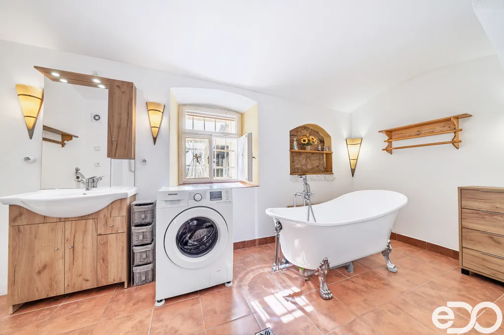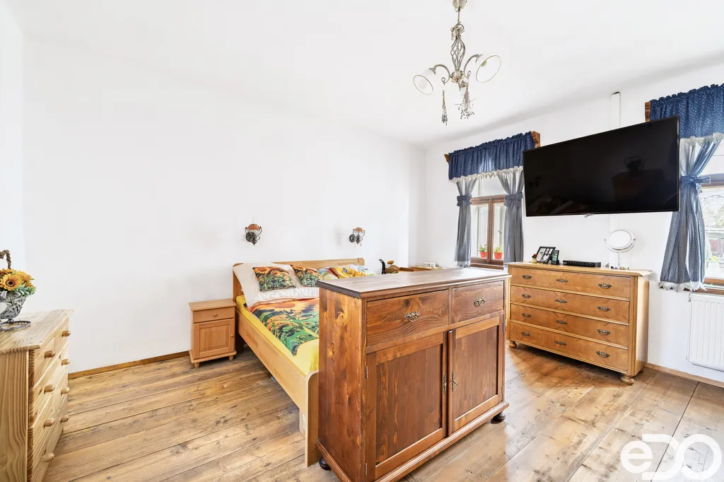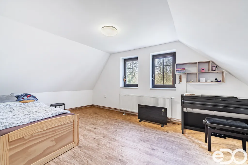 Dům je patrový – v přízemí se nachází prostorný obývací pokoj s kuchyní, ložnice a koupelna s vanou. Dále je zde také technická místnost, dílna a zimní zahrada s posezením a vstupem na zahradu. V patře najdeme dva prostorné pokoje a vlastní koupelnu.