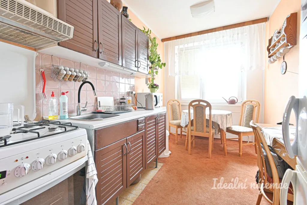 Byt se nabízí vybavený dle fotografií. Kuchyně disponuje troubou, plynovým sporákem, digestoří a jídelním stolem s židlemi. Obývací pokoj je vybaven pohovkou, konferenčním stolem a knihovnou. Ve druhém a třetím pokoji jsou postele a skříně. Součástí koupelny je pračka, vana, umyvadlo a toaleta je oddělená.