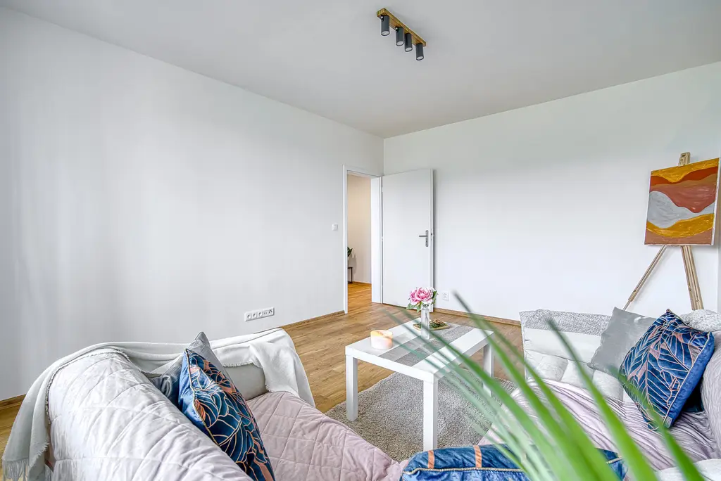 Byt se pronajímá nezařízený (s výjimkou kuchyňské linky s výše uvedeným spotřebiči, sprchového koutu, umyvadla se skříňkami, zrcadla se skříňkou a toalety), což umožňuje nájemci přizpůsobit interiér vlastním potřebám.