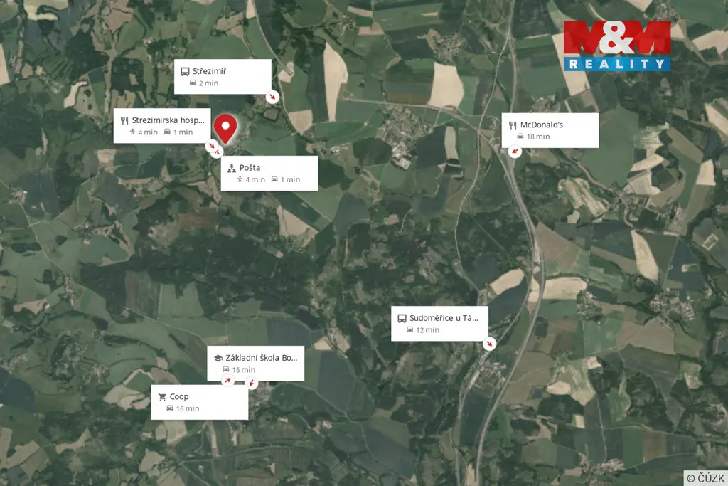 Nabízíme ve výhradním zastoupení k prodeji rodinný dům o užitné ploše 160 m² s garáží 40 m² v klidné části obce Střezimíř se zahradou o výměře 1033 m². Nemovitost disponuje přízemím o ploše 82 m² s předsíní, chodbou, kuchyní, ložnicí, dvěma pokoji, koupelnou a sociálním zařízením. Do patra 65 m² vstupujeme novým schodištěm, kde se nachází dva velké pokoje se dvěma bočními místnostmi. Z prostřední místnosti je vstup na balkon s výhledem do přírody. Vytápění je řešeno kotlem na pevná paliva a radiátory po celém domě. Rozvod vody je z vlastní studny, ohřev vody bojlerem na elektřinu, odpad je sveden do septiku. Na zahradě jsou dřevěné kůlny včetně zásoby uhlí, dřeva, nářadí a udírna. Ovocné stromy a keře lemují vzrostlé okrasné a lesní dřeviny. Obec Střezimíř se nachází na rozhraní středních- jižních Čech 5 km od mezinárodní E55, nedaleko města Tábor, nabízí občanskou vybavenost - pošta, obchod , restaurace, tenisové kurty, dětské hřiště. Těším se se zájemci na prohlídky.