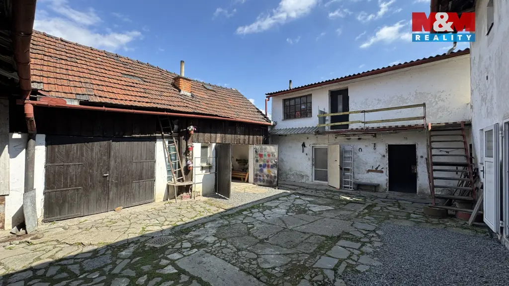 Součástí jsou dvě garáže, hospodářské budovy, studna a udržovaná zahrada.