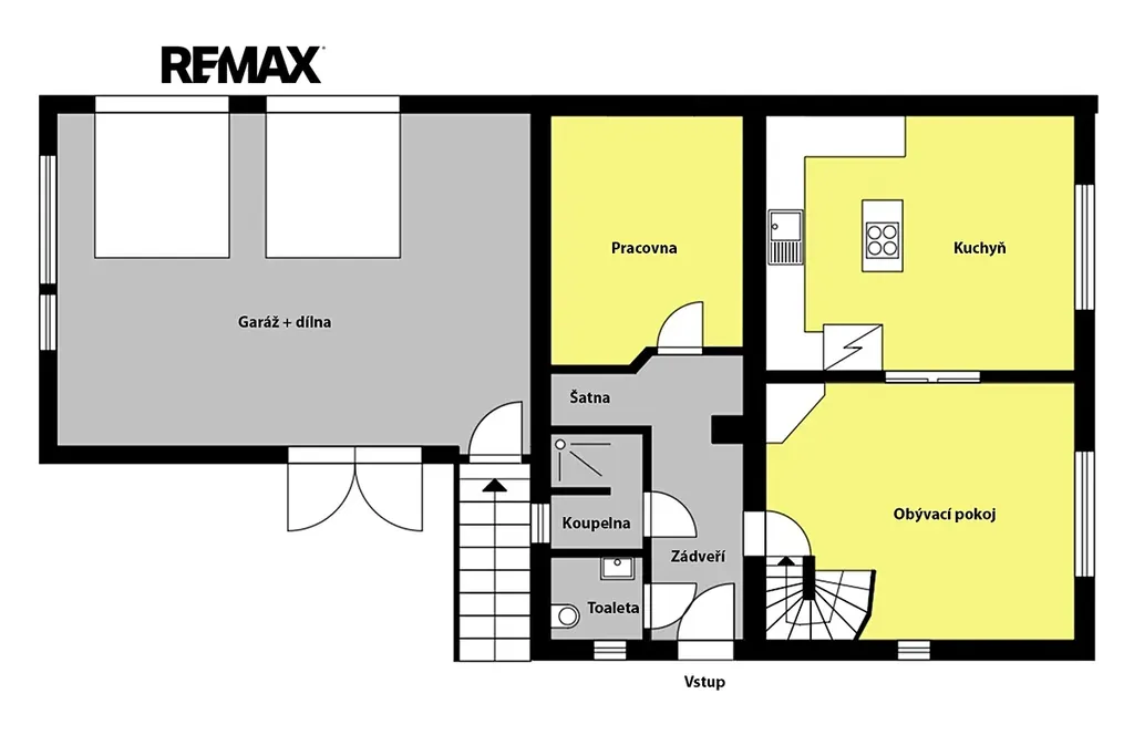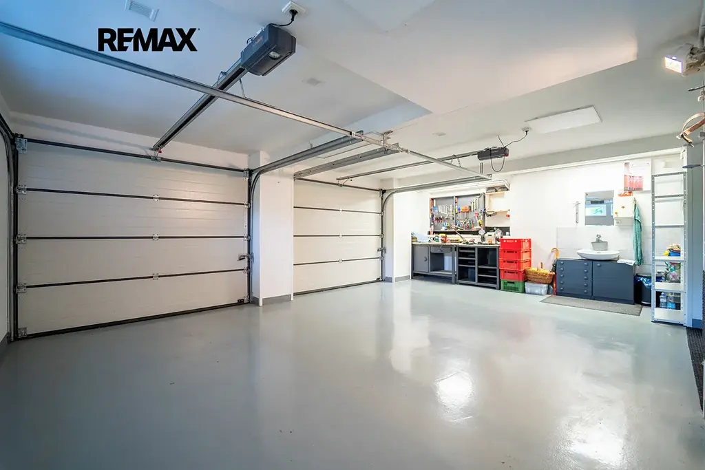 Dům je vybaven dvojgaráží s dílnou, má velkou výhodu dvou vjezdů na pozemek.
