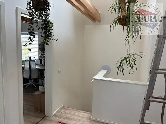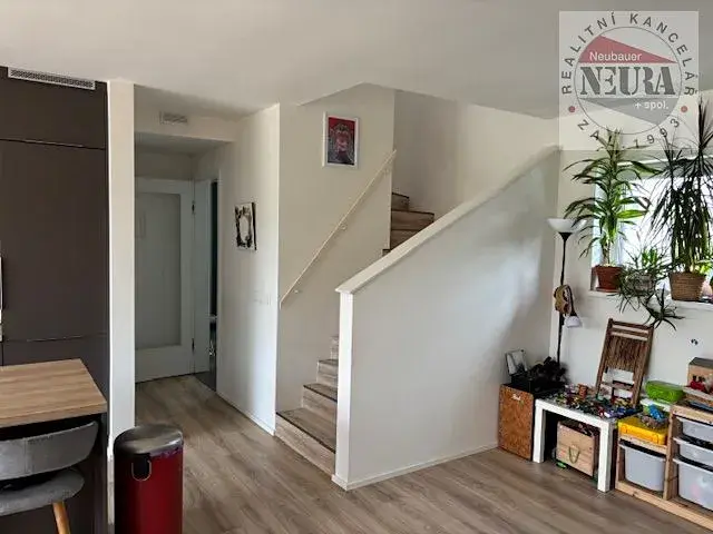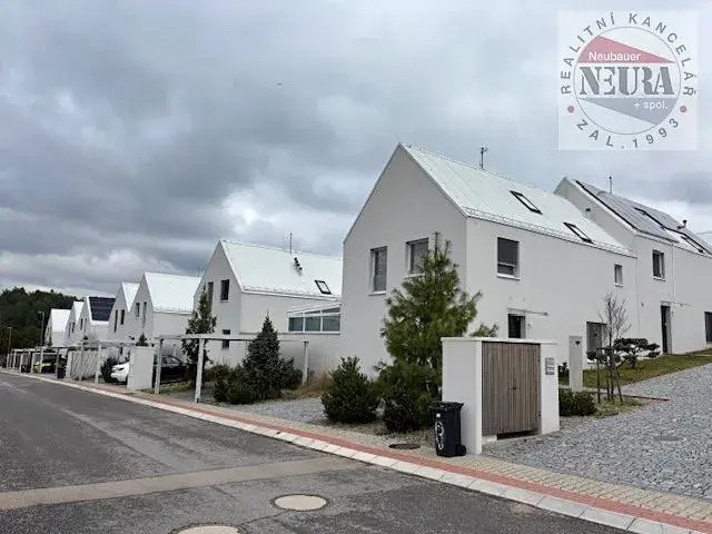 velmi krásné bydlení v areálu Green Village u golfového resortu Konopiště, samostatná polovina dvojdomu z roku 2020, plocha domu cca 144,5 m2 + terasa cca 24,5 m2, 2x zastřešené parkovací stání, zahradní domek, přes ulici koupací jezero s molem a pláží (kořenová vegetační čistička), volné cca od 1.8. 2026, dům se pronajímá bez zařízení,