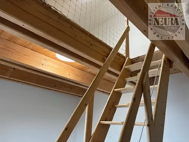 přízemí: hala, koupelna s WC, technická místnost, pracovna 11,2 m2, obývací pokoj s kuchyňským koutem 42,4 m2, kuchyňská linka včetně spotřebičů (lednice, myčka),