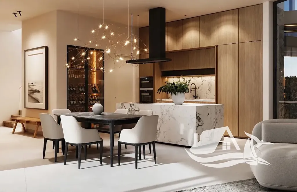 Vila o obytné ploše 163 m² je rozložena do dvou podlaží a nabízí komfortní dispozici se 3 ložnicemi a 3 koupelnami. Interiér je plně zařízený a připravený k okamžitému užívání, s důrazem na pohodlí a funkčnost.
