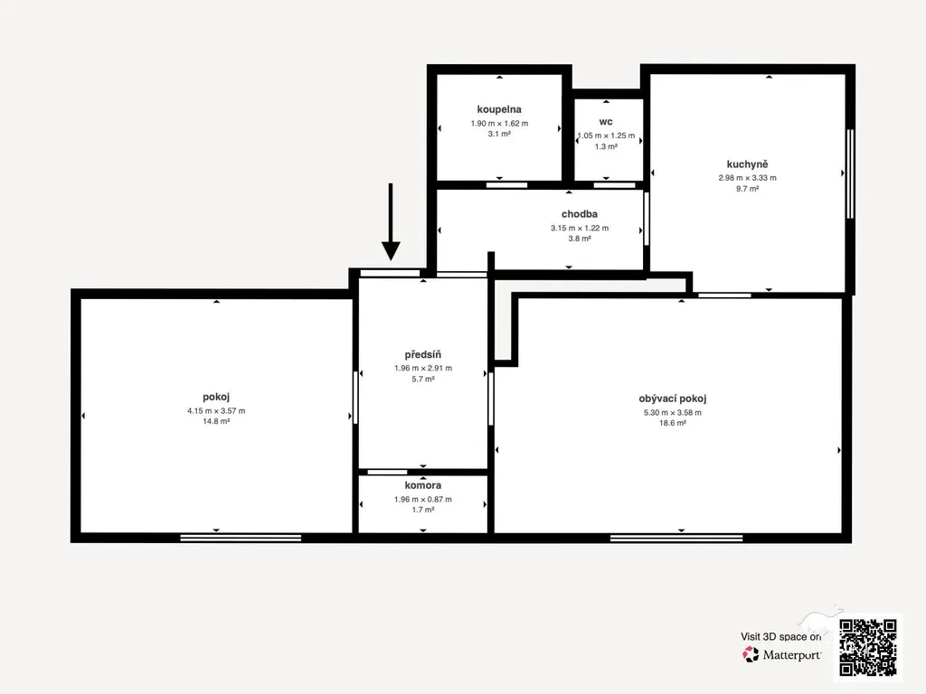 Kompletní představu o prostorovém uspořádání bytu získáte prohlédnutím 3D virtuální prohlídky zde v inzerci.