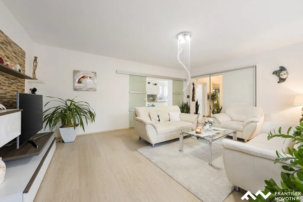 NP: obývací pokoj s lodžií, kuchyně, 3 neprůchozí pokoje, koupelna