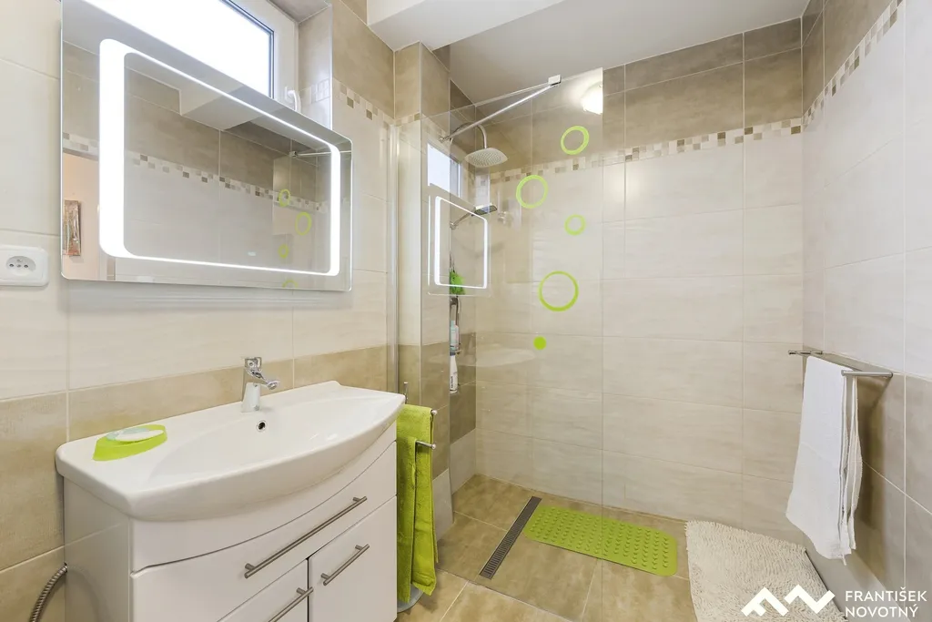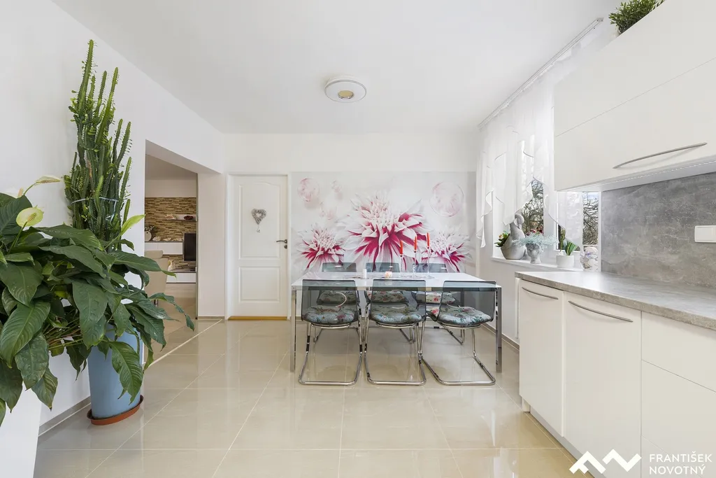 Hlavní obytné podlaží prošlo kompletní modernizací – kuchyně, koupelna, podlahy i dveře.