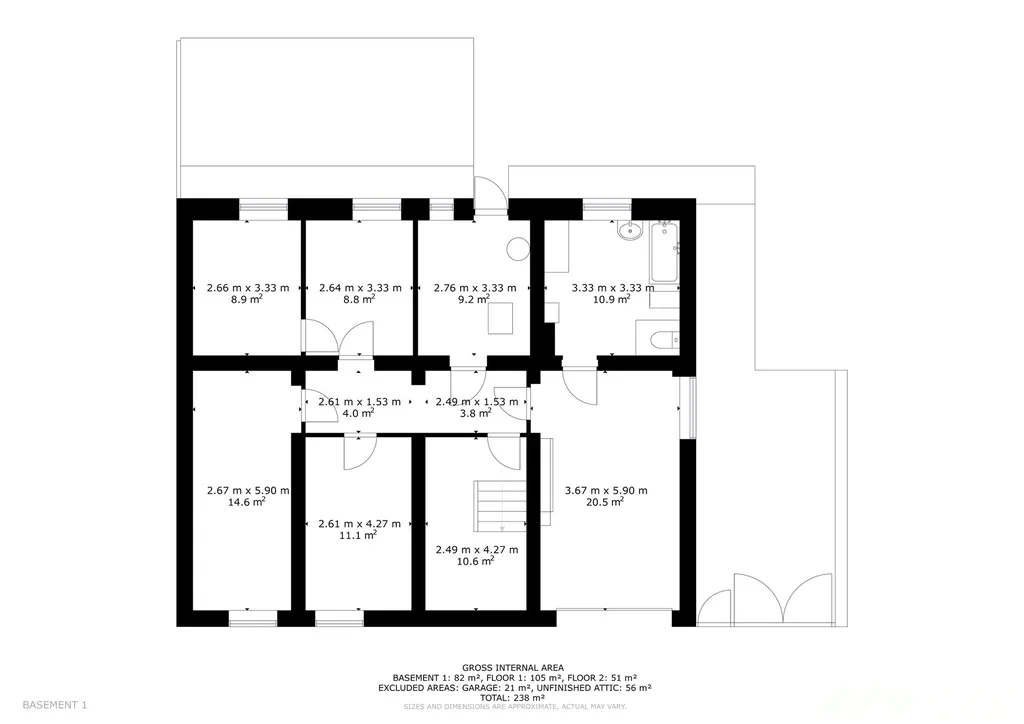 Suterén: sklepy, dílna, technické zázemí, garáž